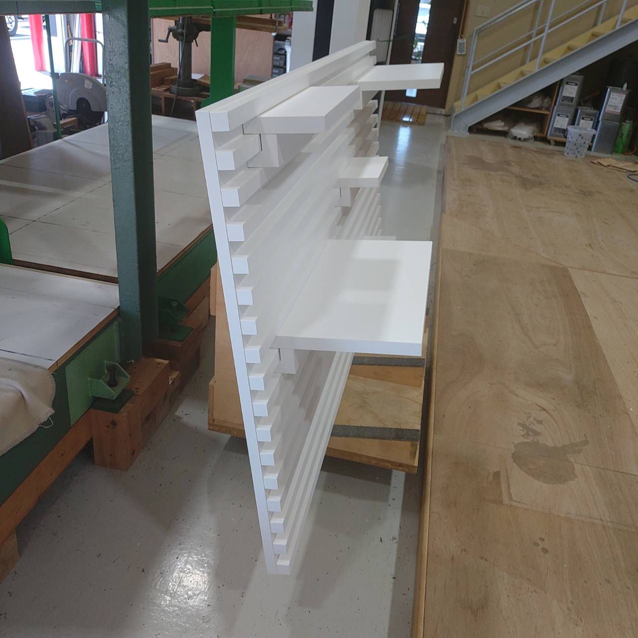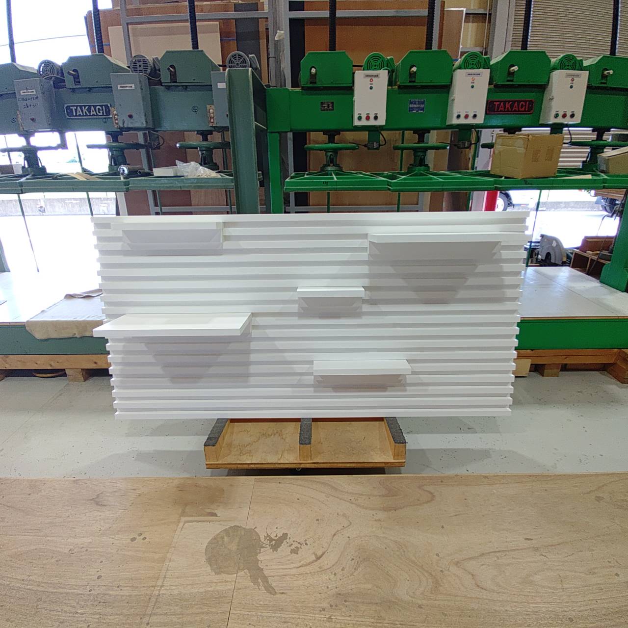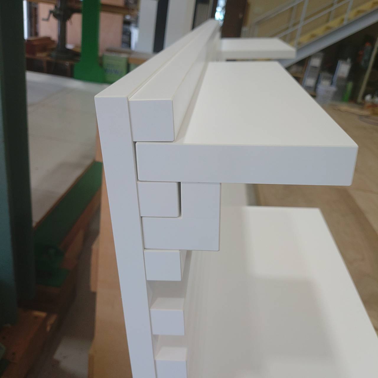 棚板を差し込むために、凸凹なミゾ風の仕様です。