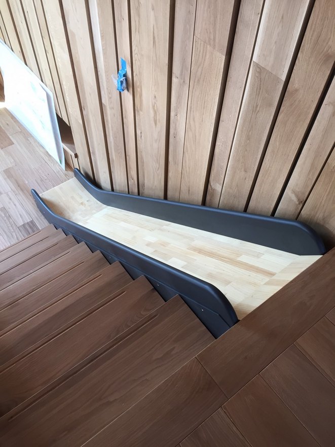 集成材に角度をつけて加工して、ジョイント。塗装して取り付けて完了です。