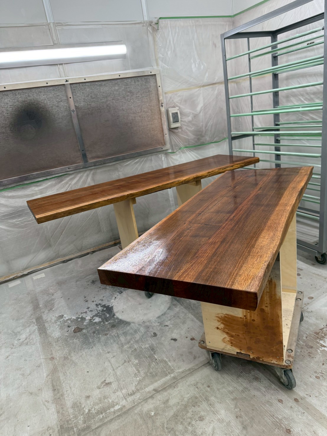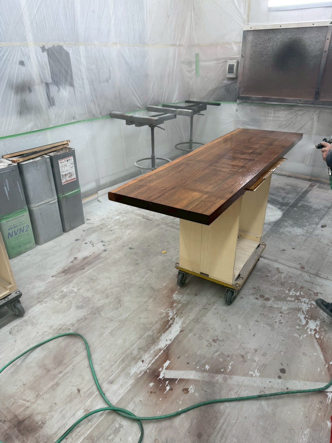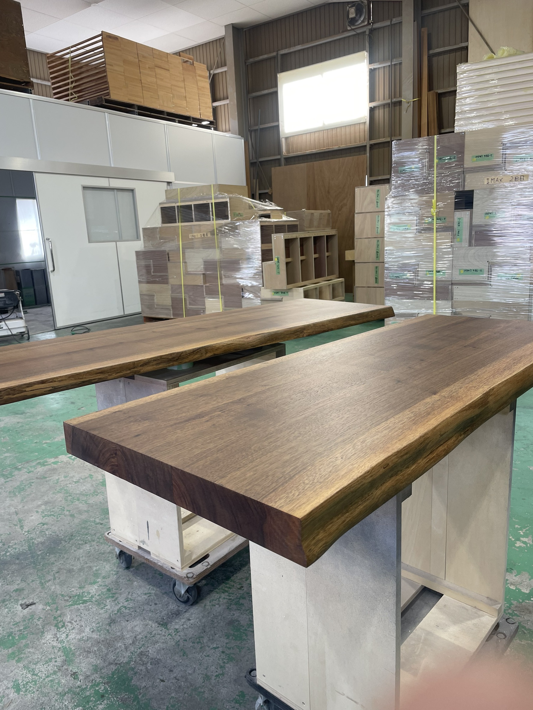 仕様:ウォールナット無垢材接ぎ合わせ、全消しクリア塗装仕上げ