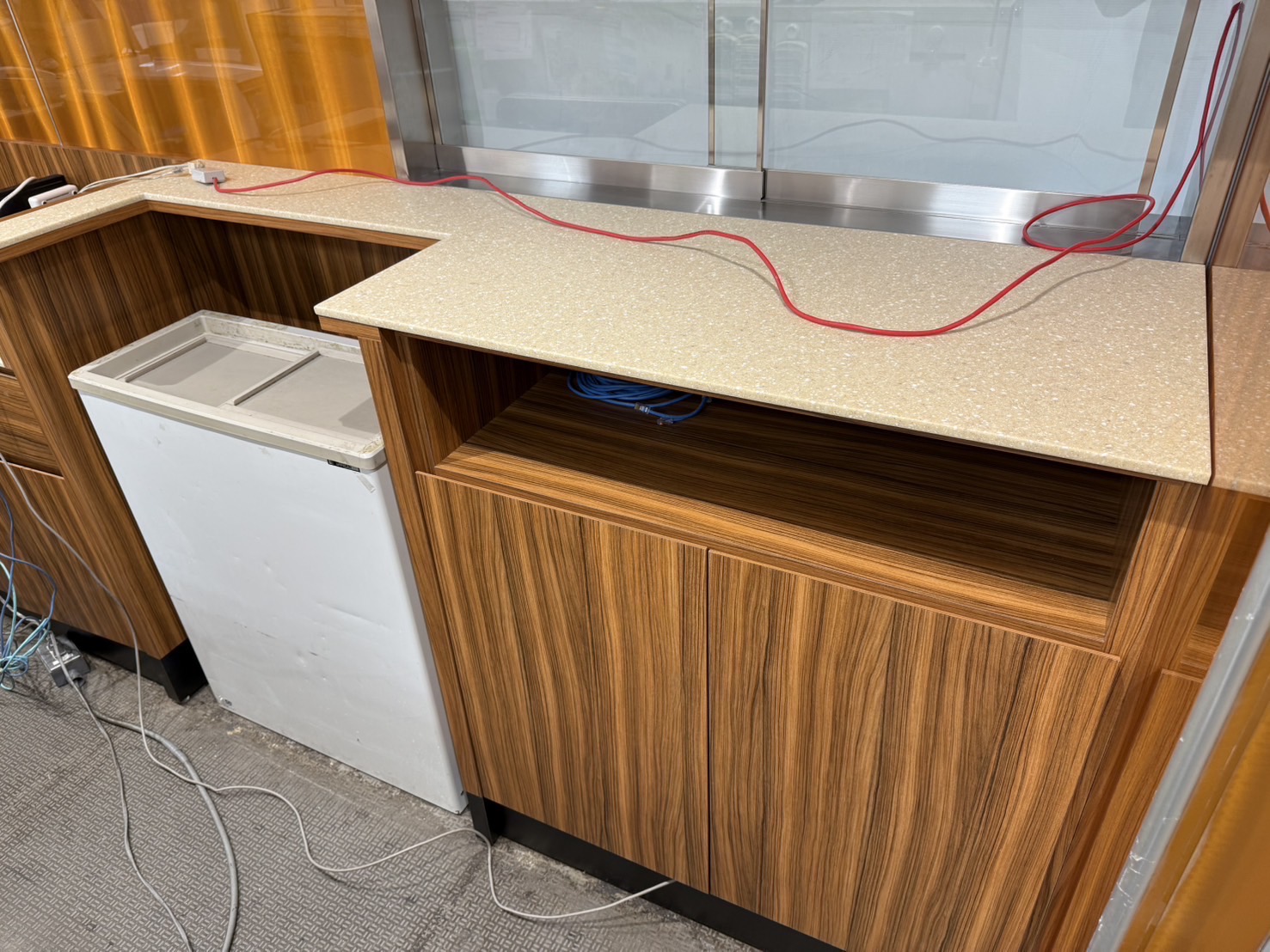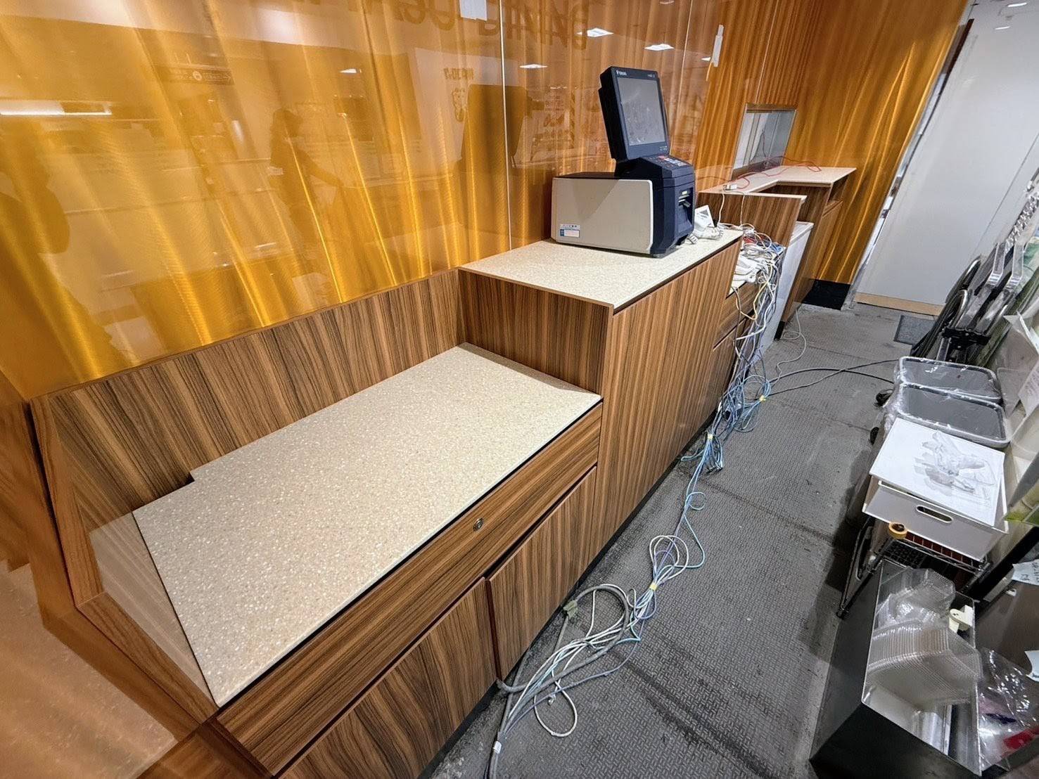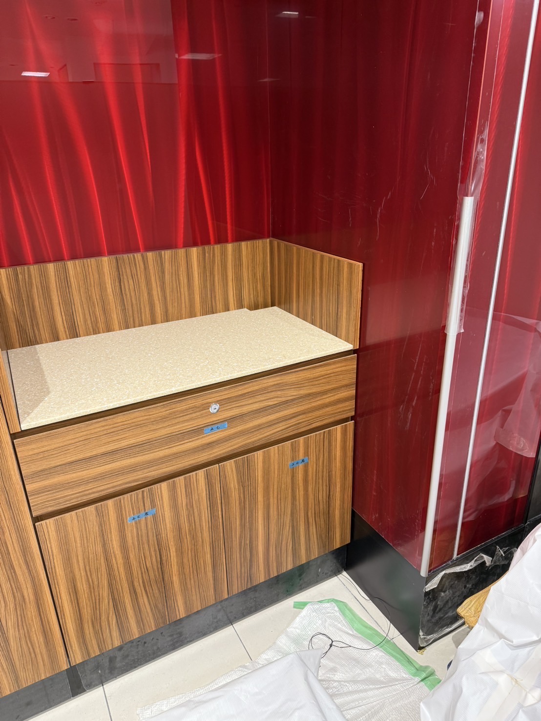 仕様:木目メラミン仕上げ、内部黒ポリ仕上、天板は人口大理石
