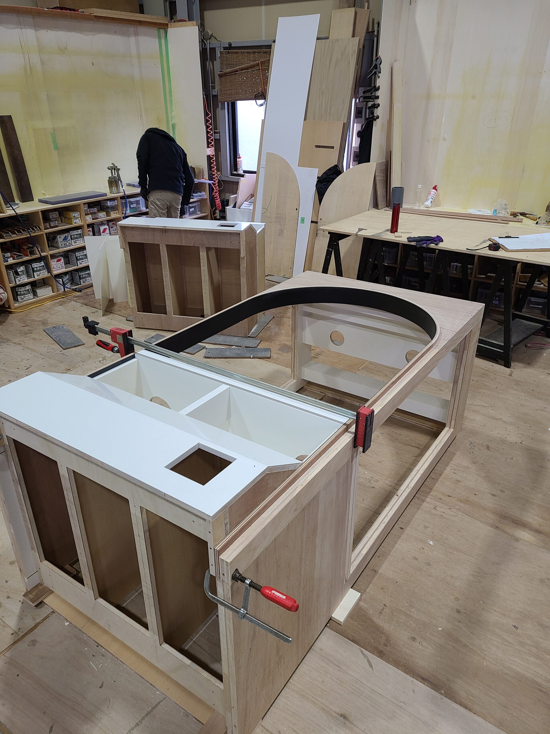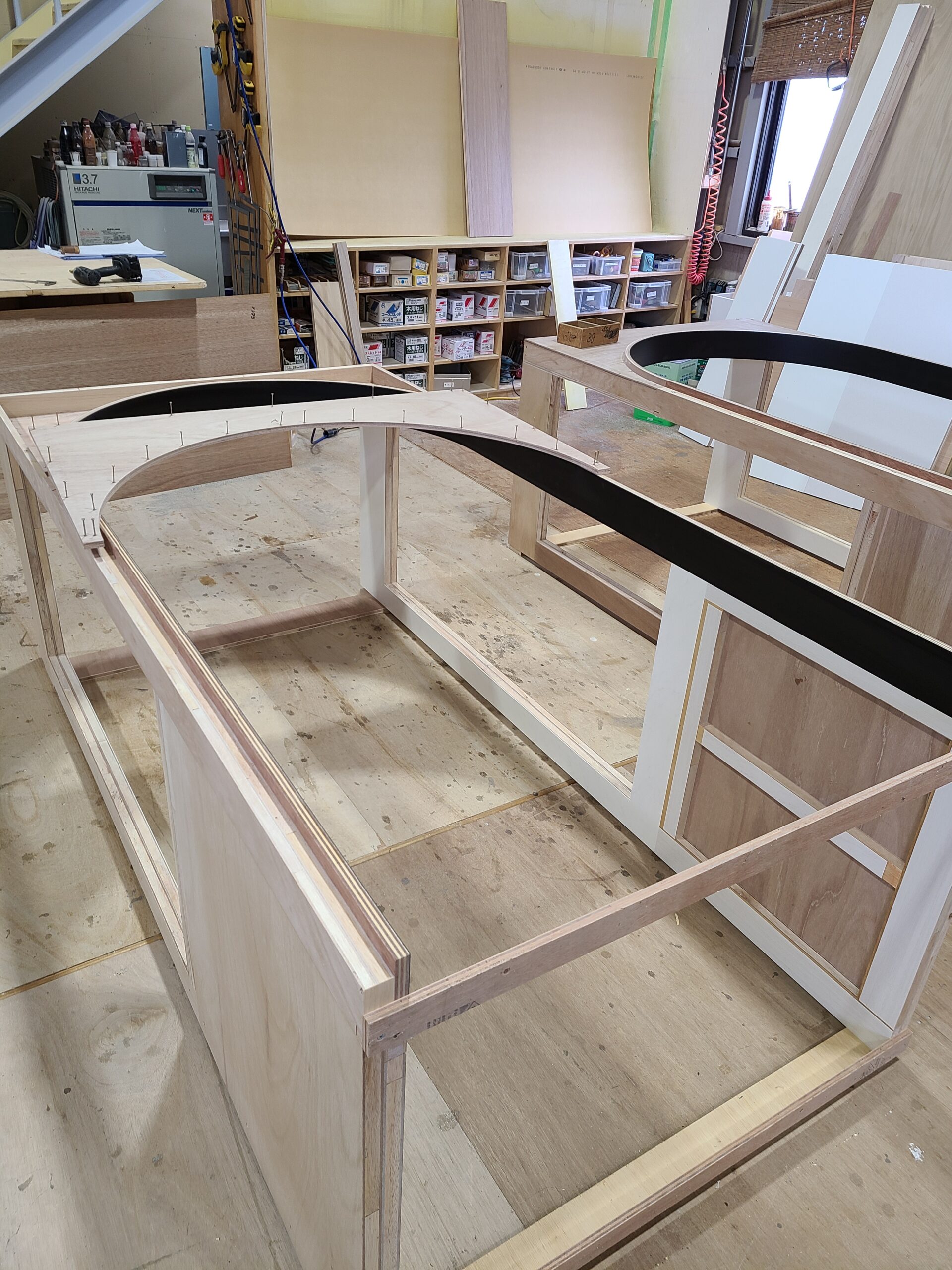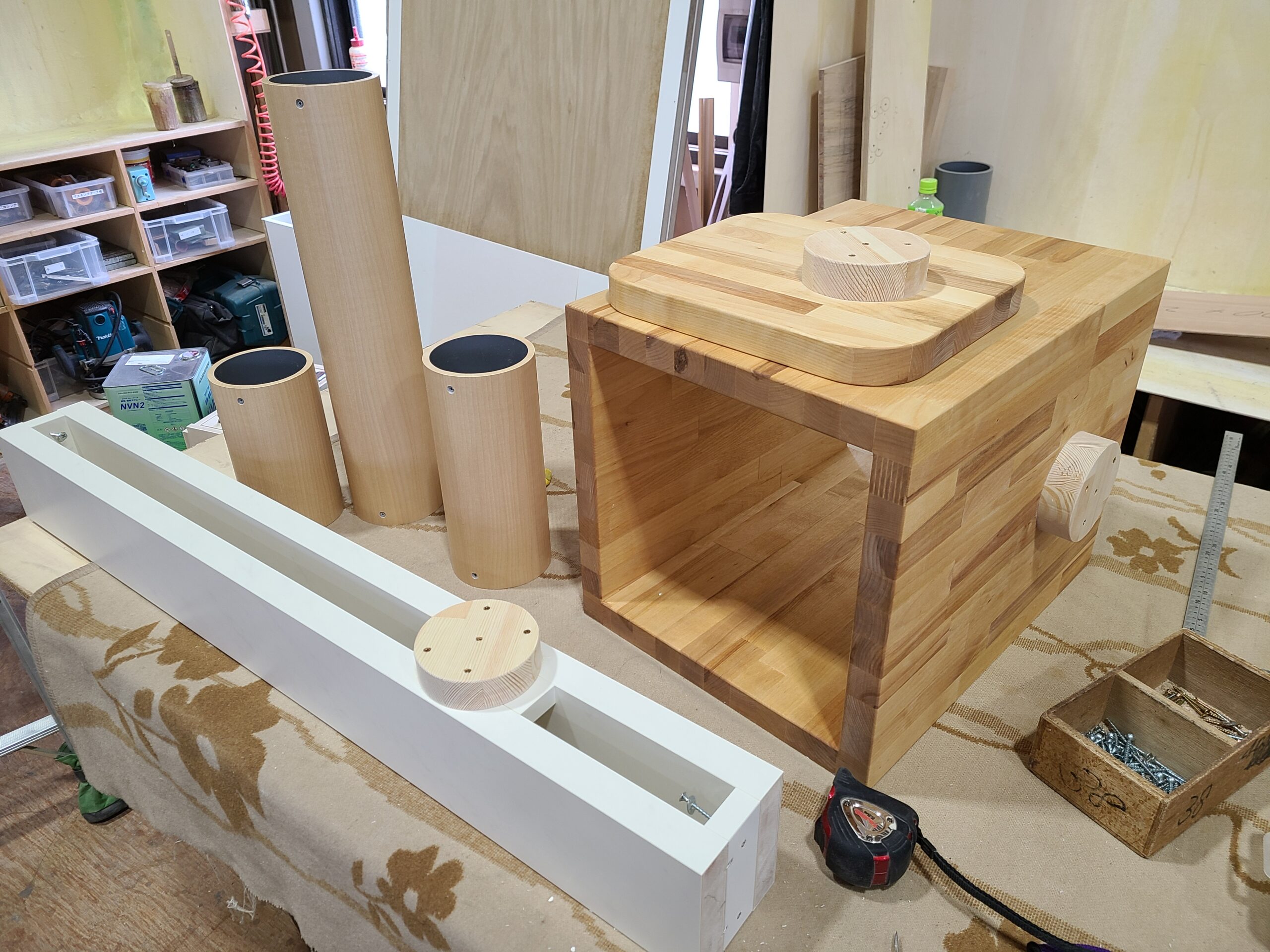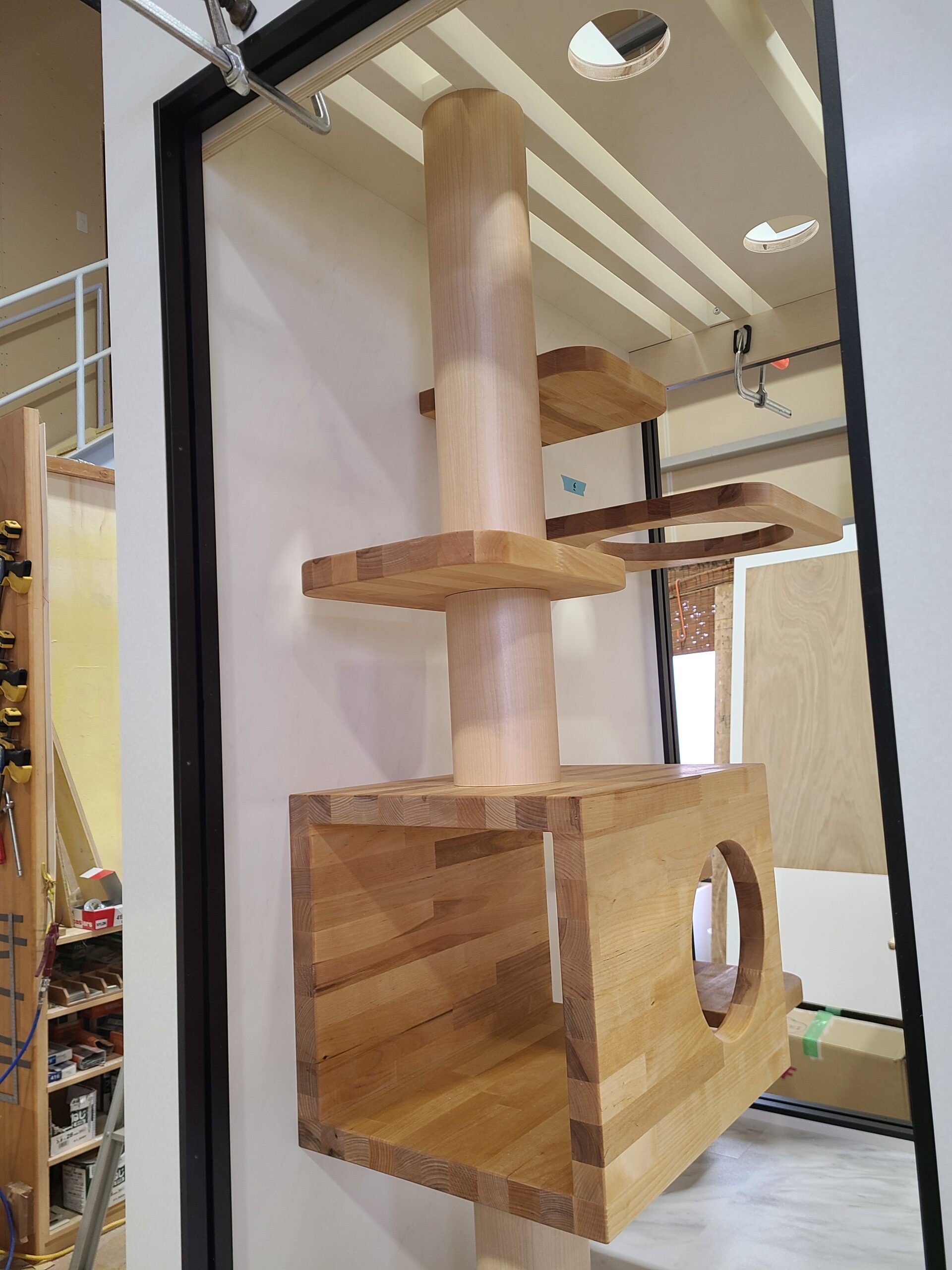 仕様:メラミン仕上げ、床面に床暖房入り、猫ステップは集成材自然塗料仕上げ