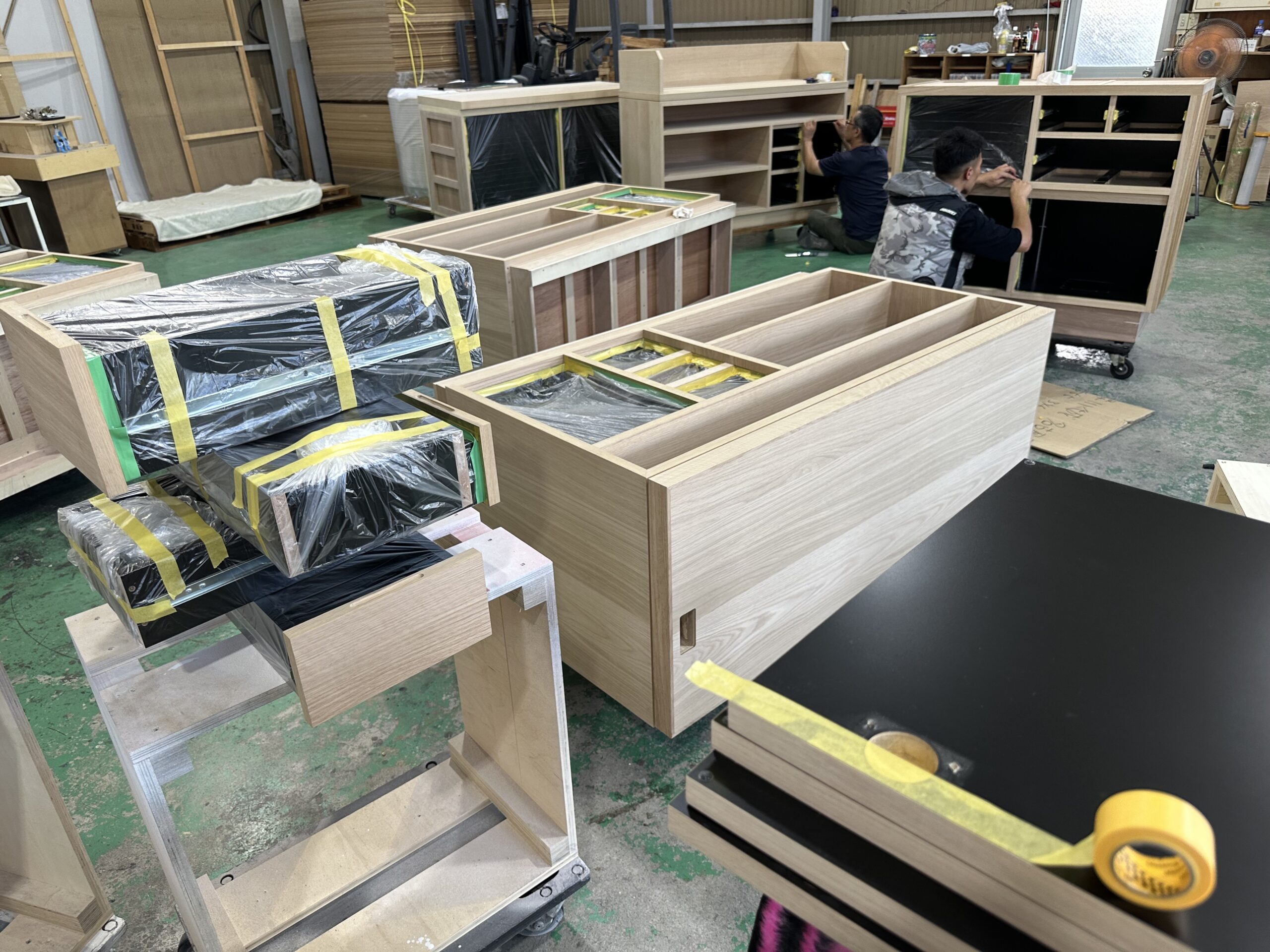 仕様:オーク突板下地 ウレタン染色オープン塗装仕上げ